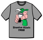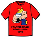 Hier sind sämtliche T-Shirts der Staatse Käels, beginnend mit dem Ersten von 1989. Außerdem hier zu sehen: Unseren "Superkäel", Kühlschlauch, Bierdeckel zum Königsjahr von Thomas Siegers, die Bewerbung von Sven Frank usw.